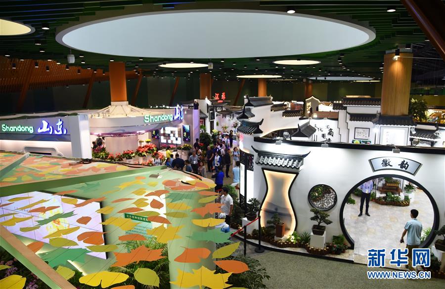在中华园艺展示区,34个室外展园无不将各地山水人文特色融入绿树繁花中,“比拼”着建园、造景、布展技术,各地风景名胜、特有植物、建筑工艺等浓缩于一园。人们穿梭于展园之间,饱览祖国大地的微缩景观,也在绿意盎然中品味乡愁。